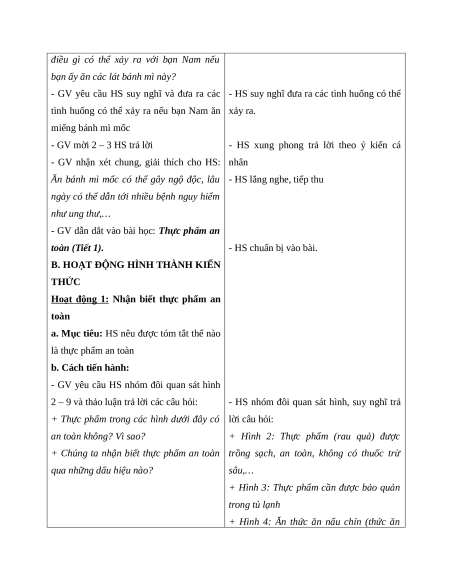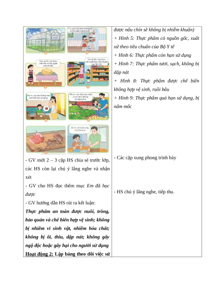 Hoạt động 1: Nhận biết thực phẩm an toàn