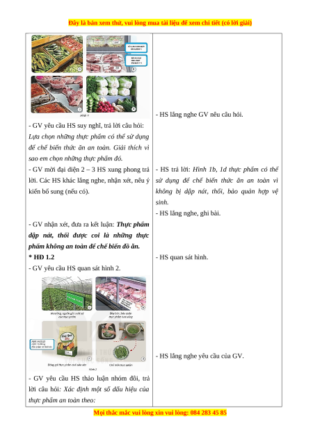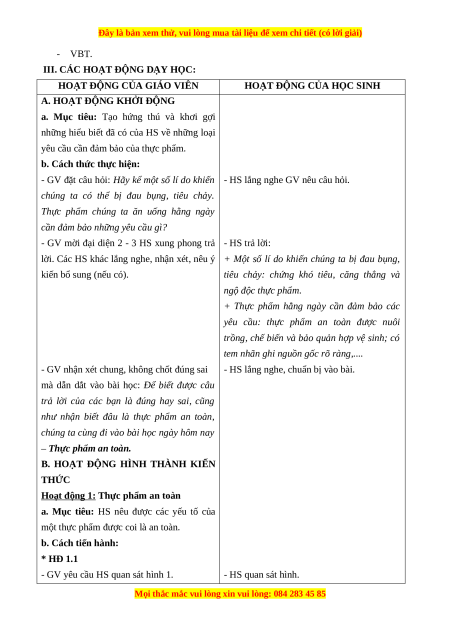 một thực phẩm được coi là an toàn. b. Cách tiến hành: * HĐ 1.1