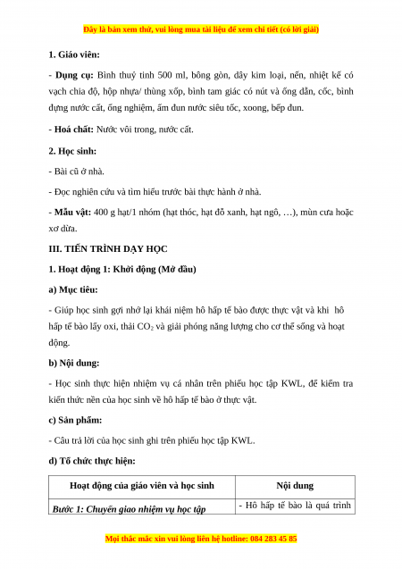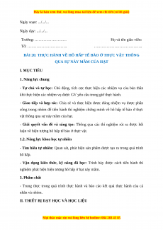 Giáo án Bài 26 Sinh học 7 Chân trời sáng tạo (2024): Thực hành về hô hấp tế bào ở thực vật thông qua sự nảy mầm của hạt