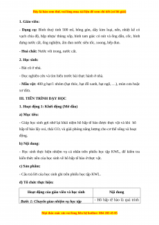 - Hoá chất: Nước vôi trong, nước cất. 2. Học sinh: - Bài cũ ở nhà.