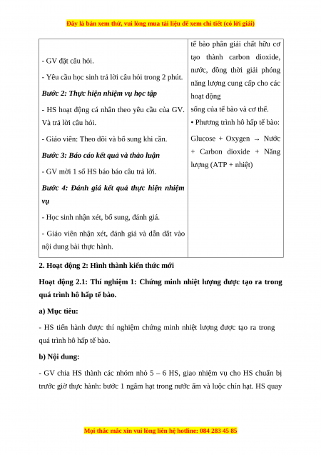 quá trình hô hấp tế bào. a) Mục tiêu:
