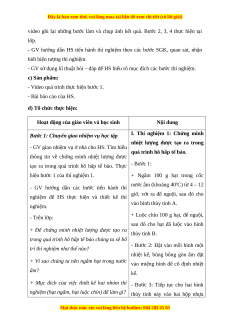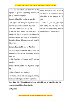 - GV sử dụng kĩ thuật hỏi – đáp để HS hiểu rõ mục đích các bước thí nghiệm.