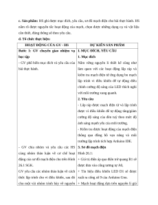 - Kiểm tra và đánh giá được hoạt động của mạch điện khi nạp chương trình vào mạch điện. 3. Phẩm chất