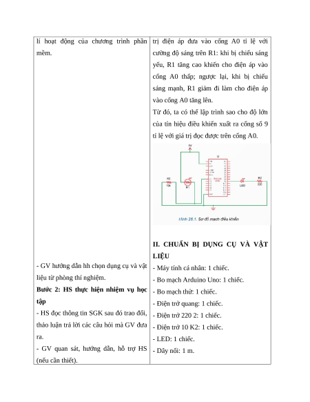 động của sơ đồ mạch điện cho trên Hình + Giá trị điện áp qua điện trở quang R1 sẽ 26.1 SGK.