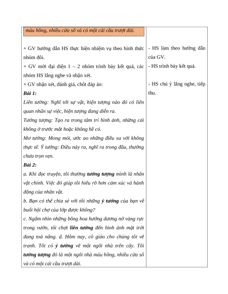 - GV mời đại diện 1 – 2 nhóm đôi trình bày ý kiến trước - HS trình bày ý kiến trước