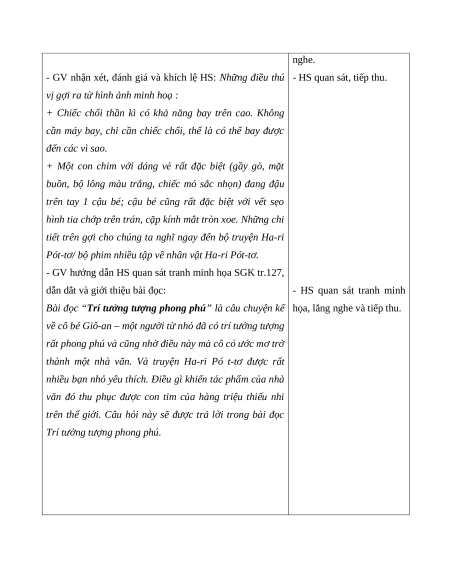 Bài đọc “Trí tưởng tượng phong phú” là câu chuyện kể họa, lắng nghe và tiếp thu.