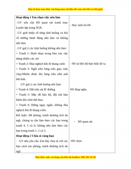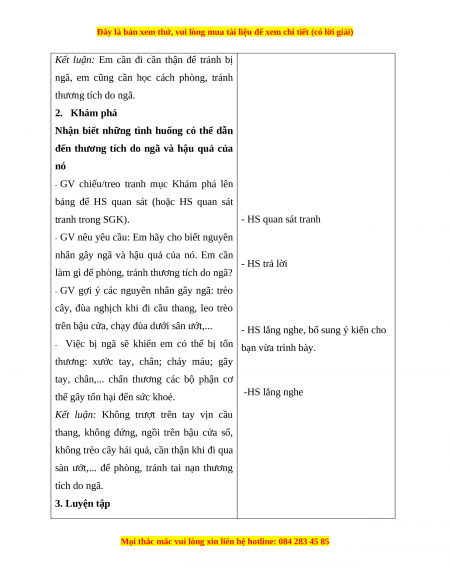 ngã, chúng ta cần làm theo các bạn trong - HS quan sát