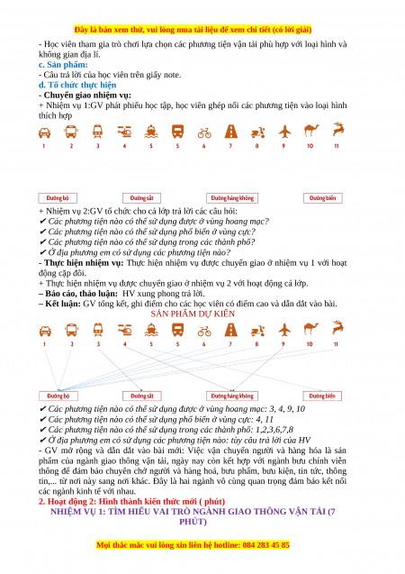 - Học viên tham gia trò chơi lựa chọn các phương tiện vận tải phù hợp với loại hình và không gian địa lí. c. Sản phẩm: