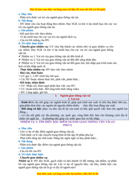 - Phân tích được vai trò của ngành giao thông vận tải. b. Nội dung
