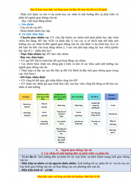 - Phân tích được đặc điểm của ngành giao thông vận tải. c. Sản phẩm
