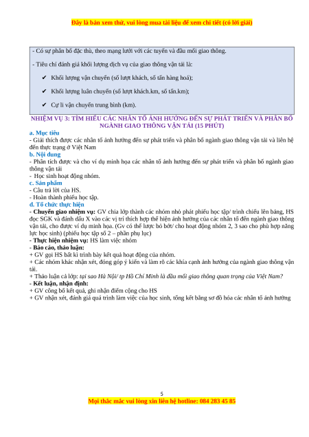 - Phân tích được vai trò của ngành giao thông vận tải. b. Nội dung