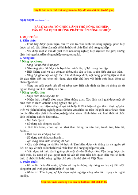 thức tổ chức lãnh thổ nông nghiệp chủ yếu trên thế giới và Việt Nam. 3. Phẩm chất: