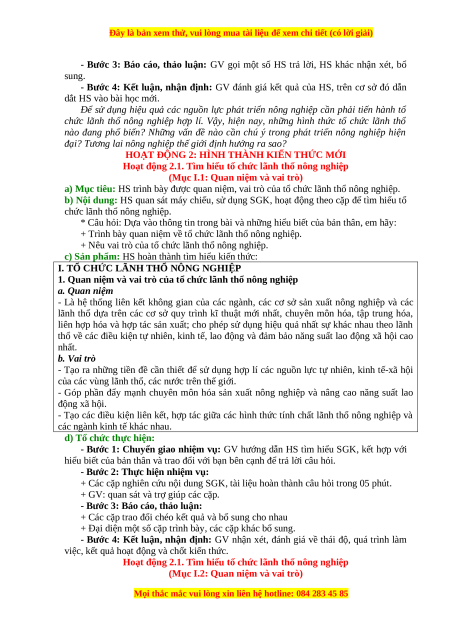 chức lãnh thổ nông nghiệp hợp lí. Vậy, hiện nay, những hình thức tổ chức lãnh thổ