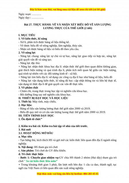 Giáo án Bài 27 Địa lí 10 Kết nối tri thức (2024): Thực hành Vẽ và nhận xét biểu đồ về sản lượng lương thực
