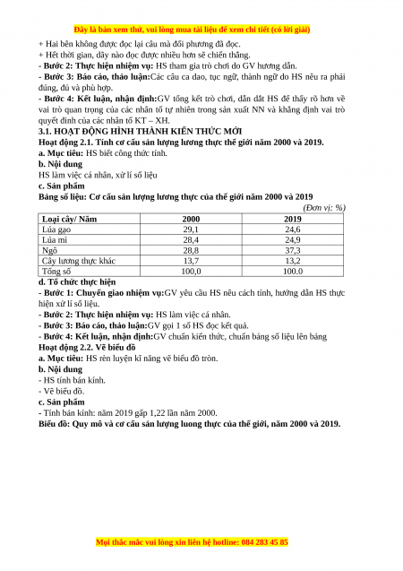- Nhận xét được sự thay đổi về quy mô và cơ cấu sản lượng luong thực của thế giới năm 2000 so với năm 2019. b. Nội dung