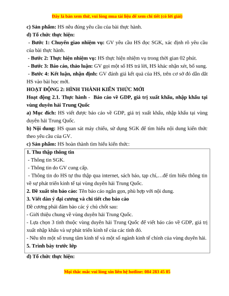 a) Mục đích: HS viết được báo cáo về GDP, giá trị xuất khẩu, nhập khẩu tại vùng duyên hải Trung Quốc.