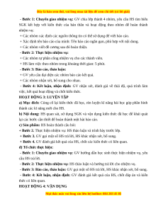 - Bước 1: Chuyển giao nhiệm vụ: GV hướng dẫn học sinh thực hiện nhiệm vụ, yêu