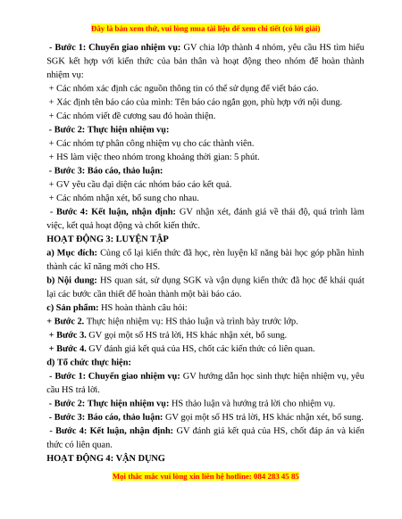 + Các nhóm xác định các nguồn thông tin có thể sử dụng để viết báo cáo.