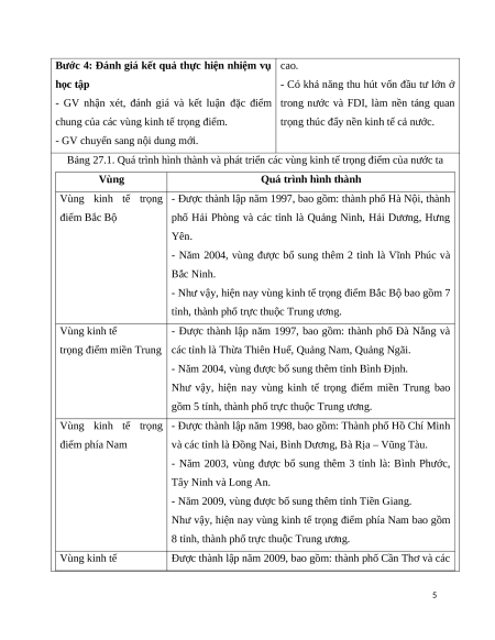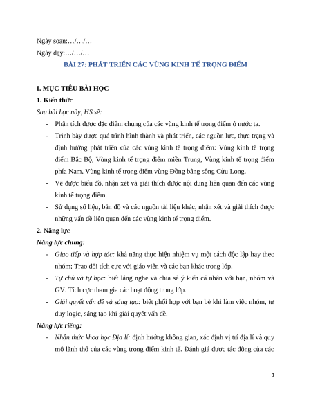 Giáo án Bài 27 Địa lí 12 Cánh diều: Phát triển các vùng kinh tế trọng điểm