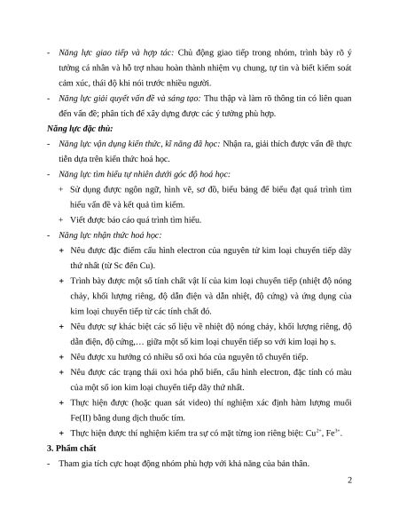 - Nêu được đặc điểm cấu hình electron của nguyên tử kim loại chuyển tiếp dãy thứ nhất (từ Sc đến Cu).
