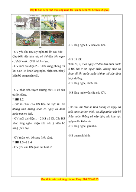 - GV mời đại diện 2 – 3 HS xung phong trả vì HS bơi ở nơi nguy hiểm, không mặc áo