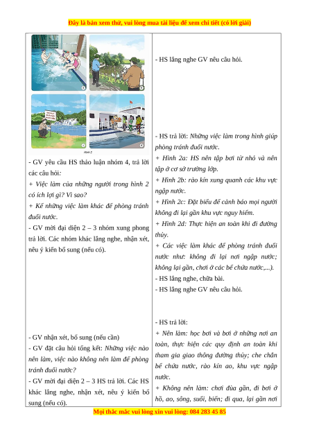 - HS trả lời: Những việc làm trong hình giúp phòng tránh đuối nước.