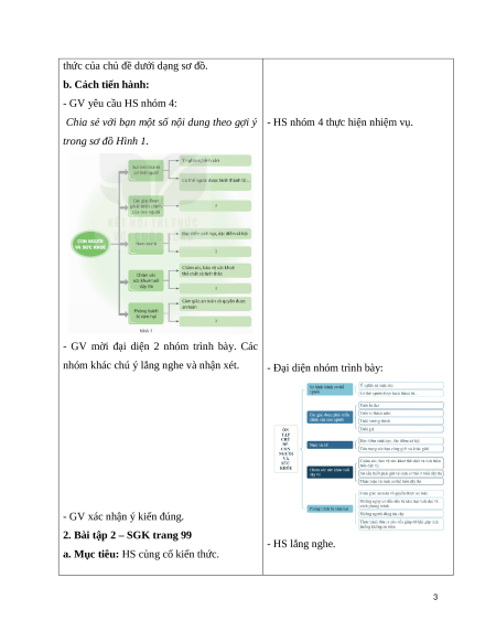thức của chủ đề dưới dạng sơ đồ. b. Cách tiến hành: - GV yêu cầu HS nhóm 4: