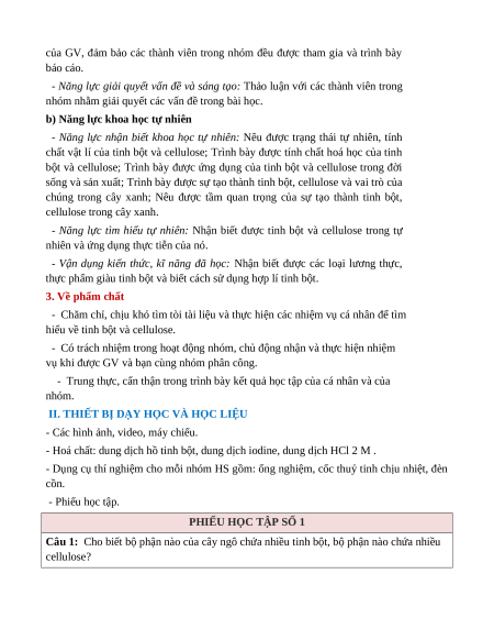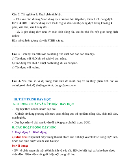 tinh bột và cellulose; Hoạt động nhóm một cách hiệu quả theo đúng yêu cầu