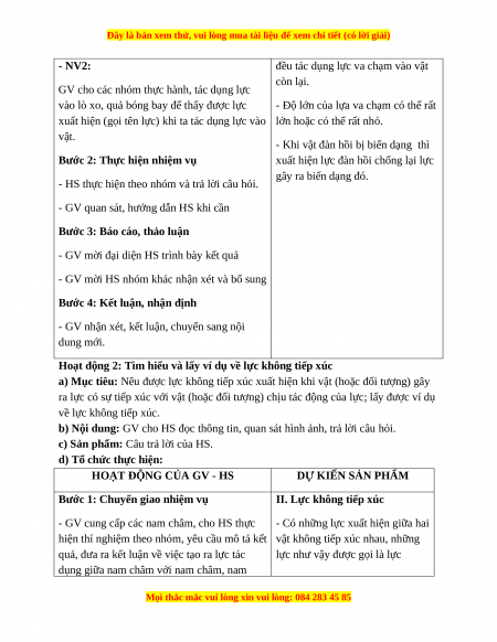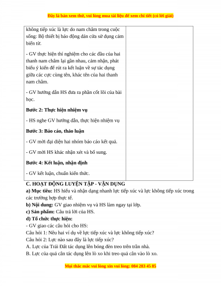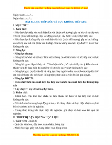 có sự tiếp xúc với vật (hoặc đối tượng) chịu tác động của lực, lấy được ví dụ về lực không tiếp xúc. 2. Năng lực - Năng lực chung:
