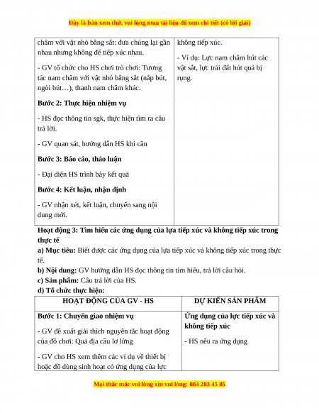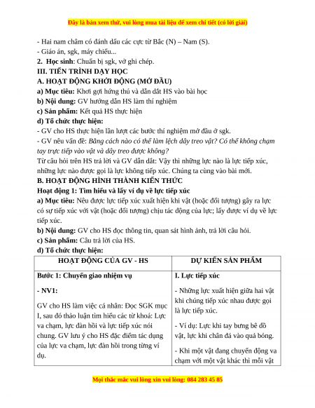 Giáo án Bài 27 KHTN 6 Cánh diều (2024): Lực tiếp xúc và lực không tiếp xúc