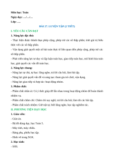 Giáo án Bài 27: Luyện tập Toán lớp 5 Cánh diều