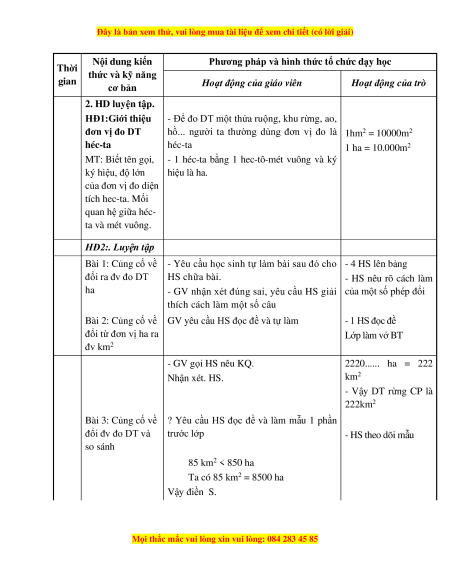 - Biết chuyển đổi các số đo diện tích trong quan hệ với héc-ta, vận dụng để giải các bài