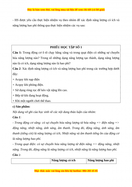 - HS được yêu cầu thực hiện nhiệm vụ theo nhóm để xác định năng lượng có ích và