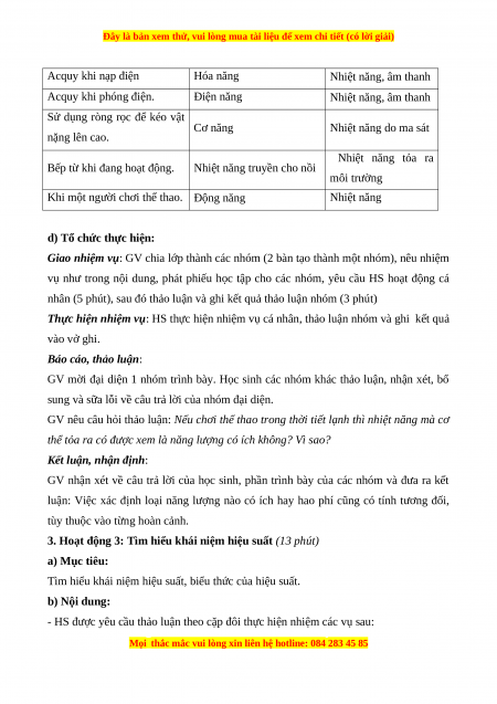 2. Hoạt động 2: Tìm hiểu năng lượng có ích và năng lượng hao phí (25 phút) a) Mục tiêu: