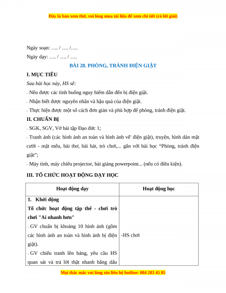 BÀI 28. PHÒNG, TRÁNH ĐIỆN GIẬT I. MỤC TIÊU