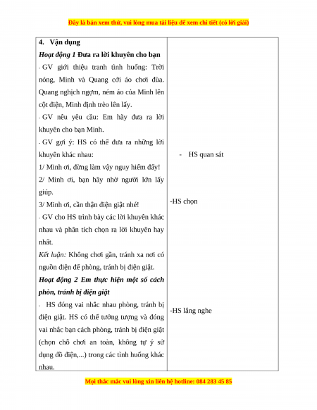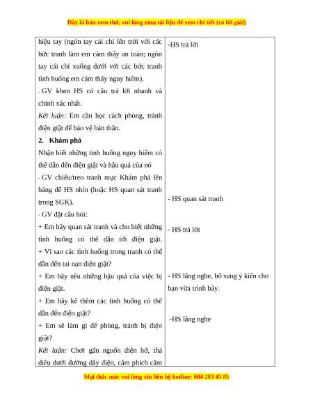 điện giật. HS có thể tưởng tượng và đóng