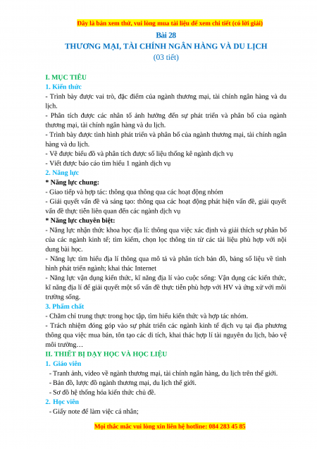 THƯƠNG MẠI, TÀI CHÍNH NGÂN HÀNG VÀ DU LỊCH (03 tiết) I. MỤC TIÊU 1. Kiến thức