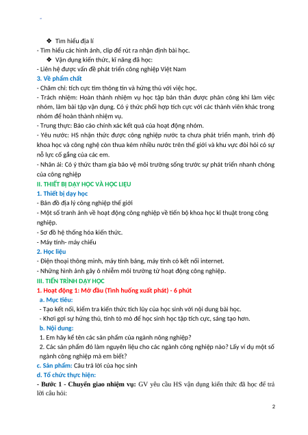 - Liên hệ được vấn đề phát triển công nghiệp Việt Nam 3. Về phẩm chất
