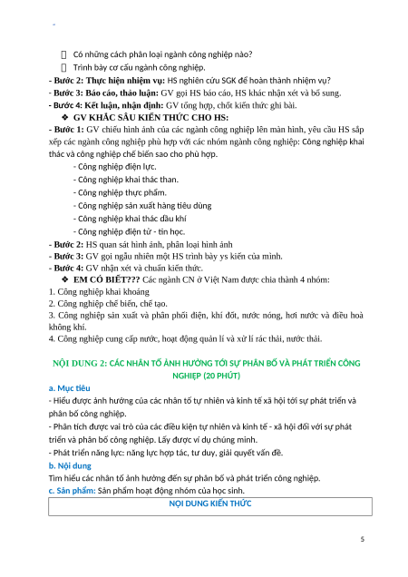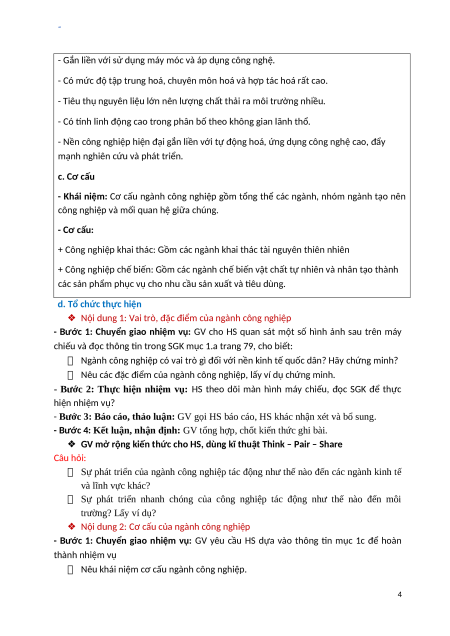 NỘI DUNG 1: VAI TRÒ, ĐẶC ĐIỂM VÀ CƠ CẤU NGÀNH CÔNG NGHIỆP