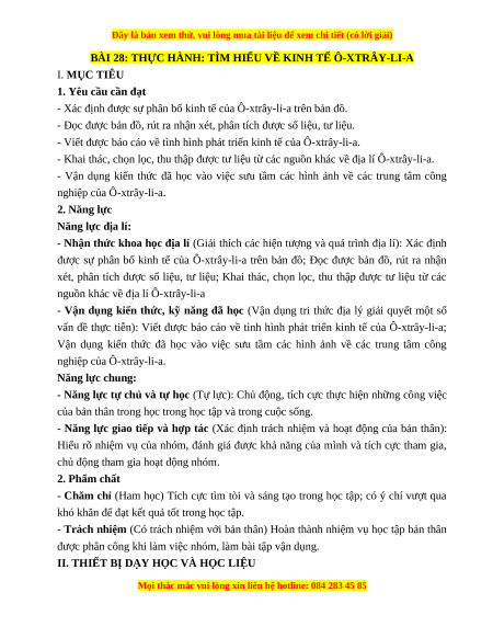 BÀI 28: THỰC HÀNH: TÌM HIỂU VỀ KINH TẾ Ô-XTRÂY-LI-A I. MỤC TIÊU 1. Yêu cầu cần đạt