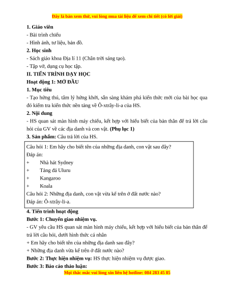đó kiểm tra kiến thức nền tảng về Ô-xtrây-li-a của HS. 2. Nội dung