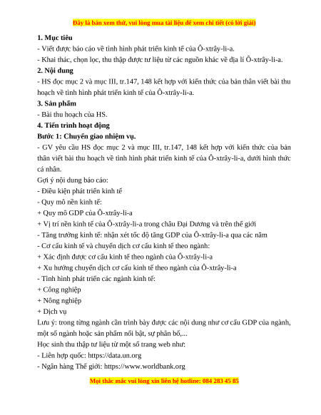 - Viết được báo cáo về tình hình phát triển kinh tế của Ô-xtrây-li-a.
