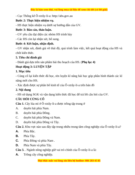 Câu 1. Cây lúa mì ở Ô-xtrây-li-a được trồng tập trung ở