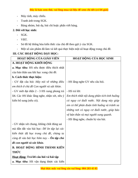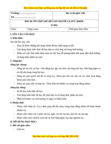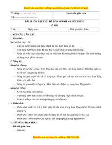 BÀI 28: ÔN TẬP CHỦ ĐỀ CON NGƯỜI VÀ SỨC KHỎE (2 tiết) Tuần: Ngày soạn: Thời gian thực hiện: I. YÊU CẦU CẦN ĐẠT: 1. Kiến thức: Sau bài học này, HS: