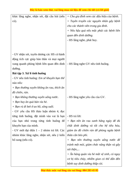 - GV mời đại diện 1 – 2 nhóm trả lời. Các giảm ăn đồ chiên rán để phòng ngừa bệnh