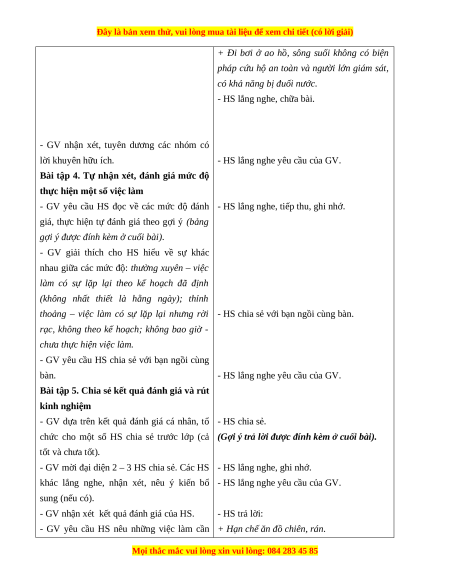 - Phân tích được các tình huống có nguy cơ đuối nước. 3. Phẩm chất: