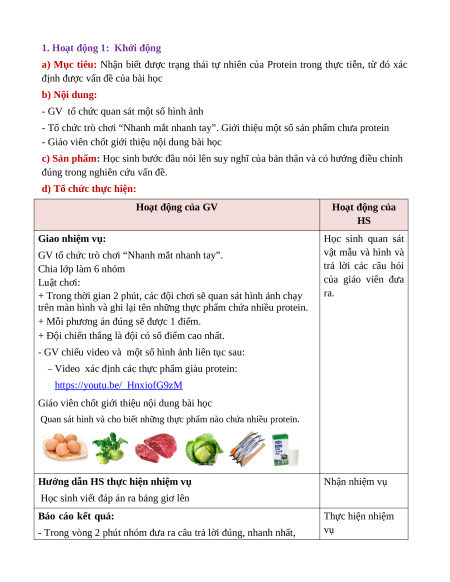 - Tổ chức trò chơi “Nhanh mắt nhanh tay”. Giới thiệu một số sản phẩm chưa protein