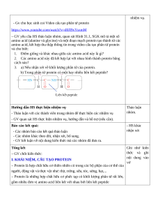 - Nêu được khái niệm, đặc điểm cấu tạo phân tử (do nhiểu amino acid tạo nên, liên kết