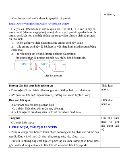 Giáo án Bài 28 Khoa học tự nhiên 9 Cánh Diều (2024): Protein