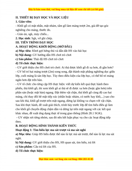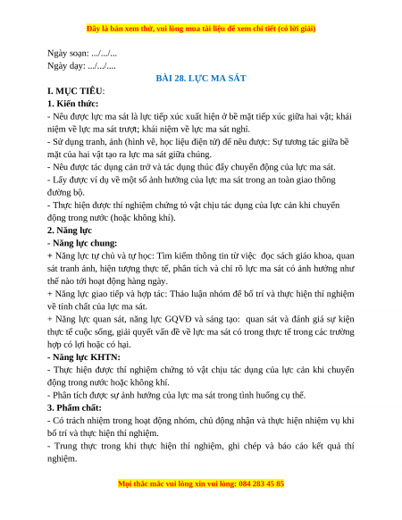 Ngày soạn: .../.../... Ngày dạy: .../.../.... BÀI 28. LỰC MA SÁT I. MỤC TIÊU: 1. Kiến thức: